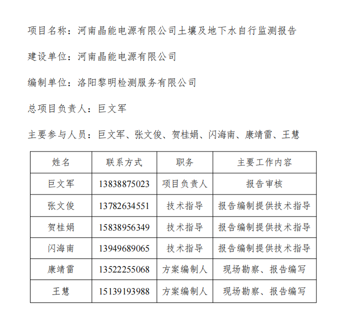 河南晶能電源有限公司土壤及地下水自行監(jiān)測報告